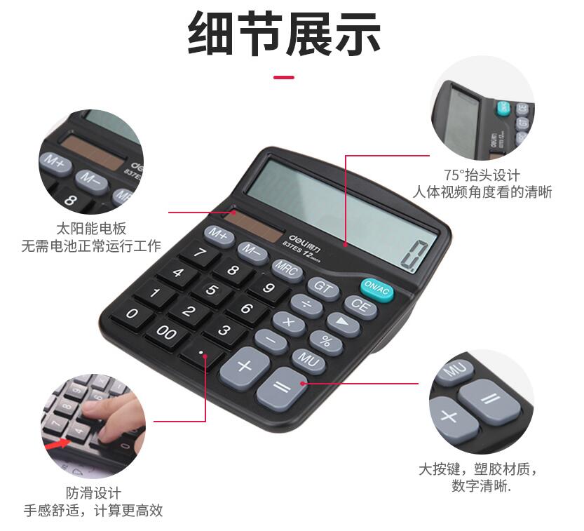 得力837計(jì)算器辦公用會(huì)計(jì)專用太陽(yáng)能學(xué)生用帶語(yǔ)音大學(xué)財(cái)務(wù)小號(hào)便攜雙電源計(jì)算機(jī)器按鍵文具辦公用品大號(hào)