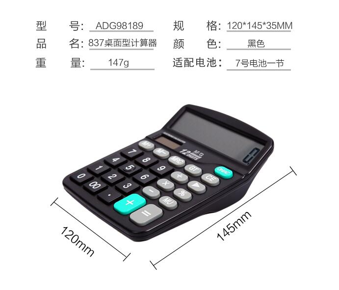 晨光文具837太陽能計(jì)算器商務(wù)型辦公用會計(jì)專用科學(xué)商用學(xué)生考試大屏大按鍵計(jì)算機(jī)大號小號便攜雙電源